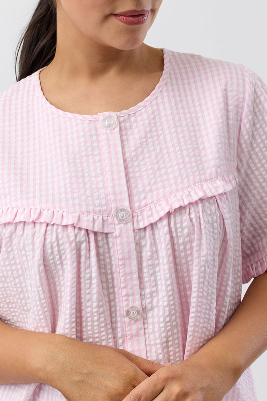 SEERSUCKER CHECK BRUNCH COAT PINK - SK926C5