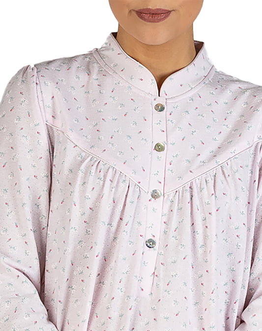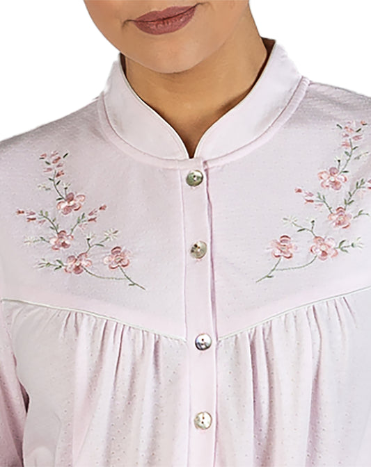 BOUQUET EMBROIDERY MANDARIN NIGHTIE PINK - SK238E