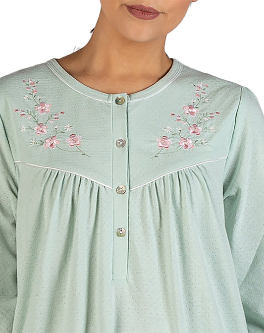 ClearanceBOUQUET EMBROIDERY NIGHTIE SAGE - SK237E