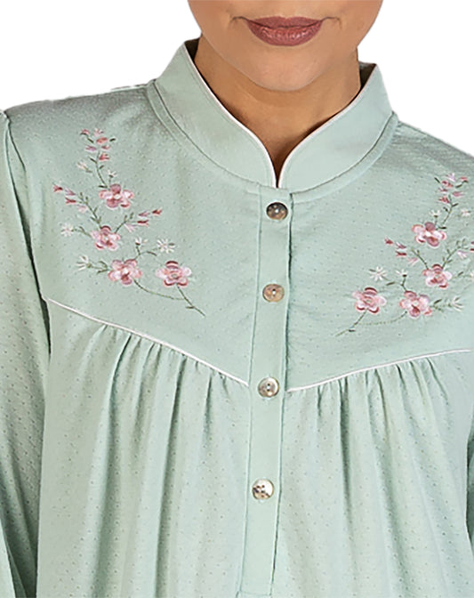 BOUQUET EMBROIDERY MANDARIN NIGHTIE SAGE - SK238E
