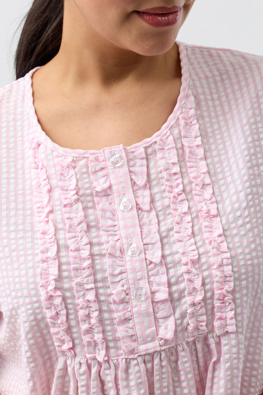 SEERSUCKER CHECK NIGHTIE PINK - SK707C5