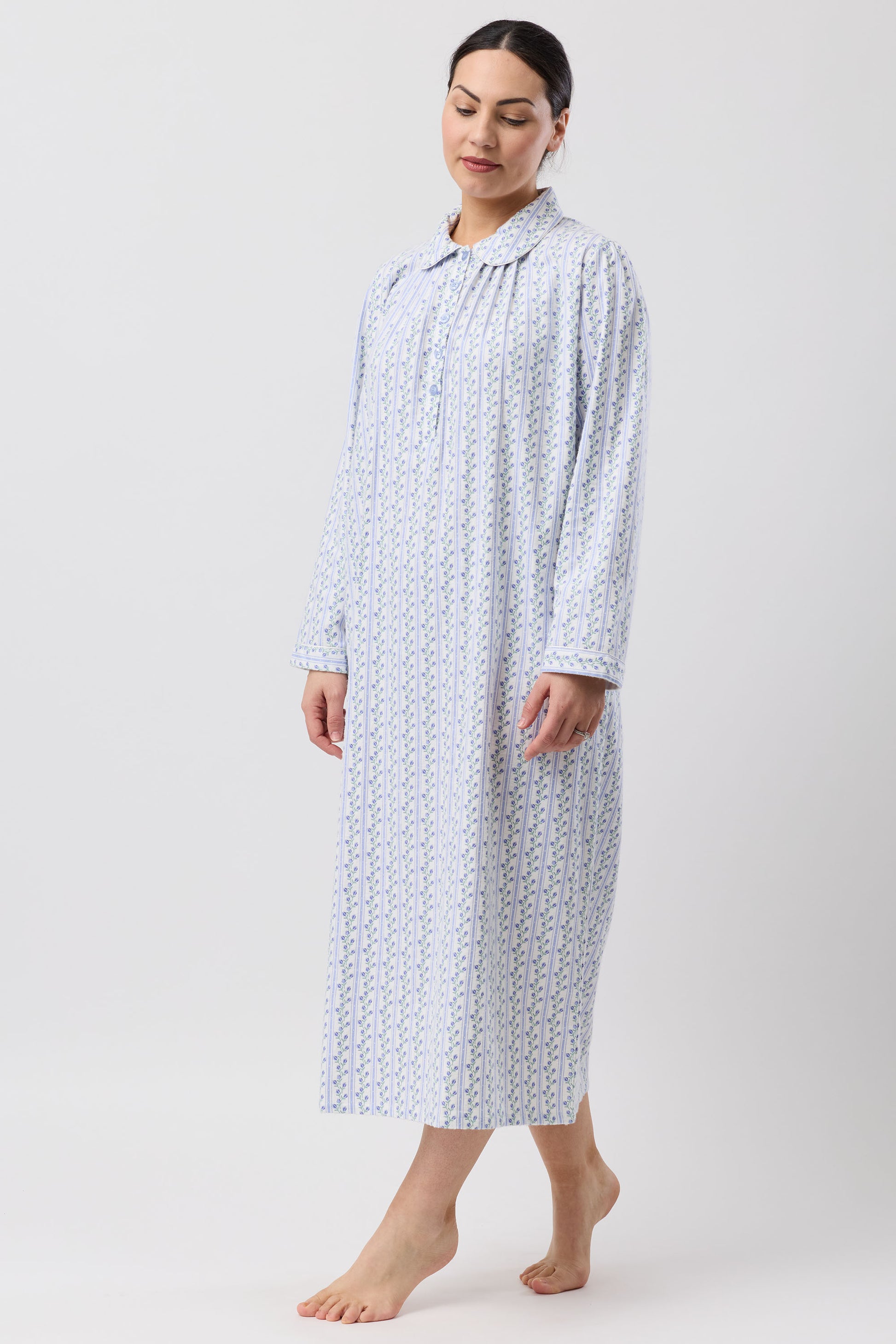 TULIP STRIPE COLLAR NIGHTIE BLUE - SK629T6